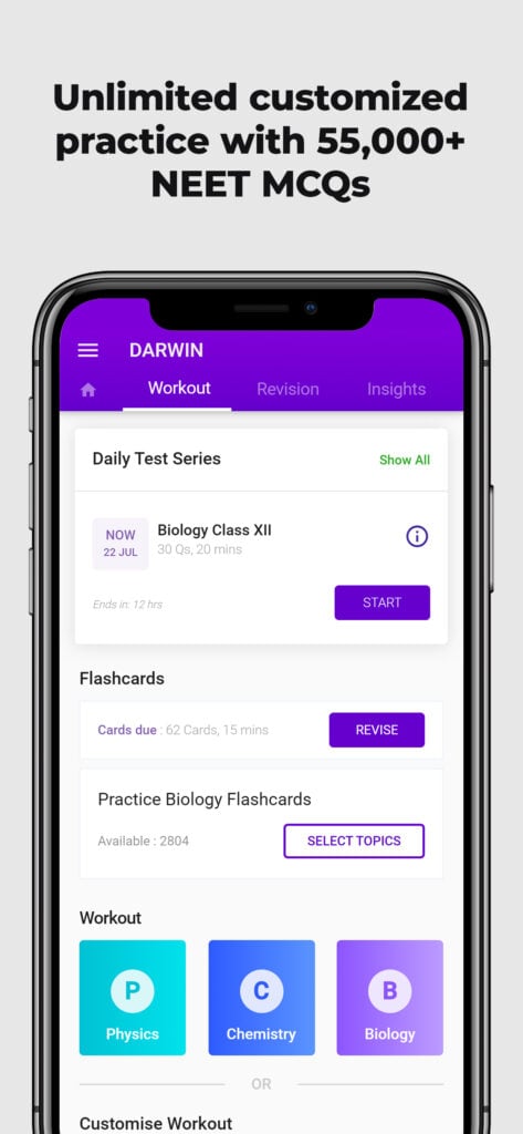 Identify the most productive time of the day and try to allocate some of it towards NEET preparation. If you put in the extra hours in the starting phase to get familiar with the topics, it will help you a lot in getting a firm grip on NEET concepts. Get enrolled in Darwin from the 11th standard itself so that you get time to cover every aspect of the medical entrance exam. Darwin is an all-in-one self-learning app that has comprehensive notes, 33,000+ MCQs, AI-enabled analytics, and regular mock tests to help you to take your performance to the next level among other things. Using this platform religiously from the start can give you a major advantage over others.